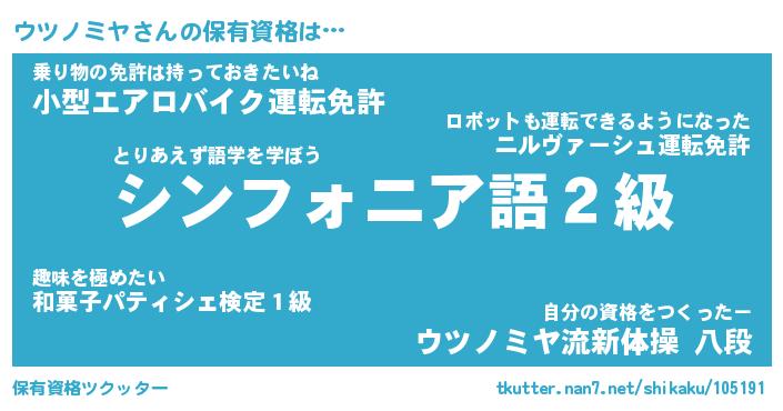| ファンタジー風あだ名 | 『ウツフェル』『エターナルウツノミヤー』 |