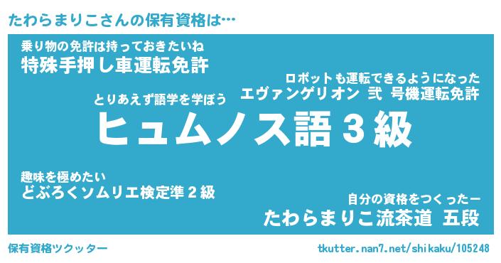 | 伝説のあだ名 | 『封印されし傭兵たわらまりこ』 |