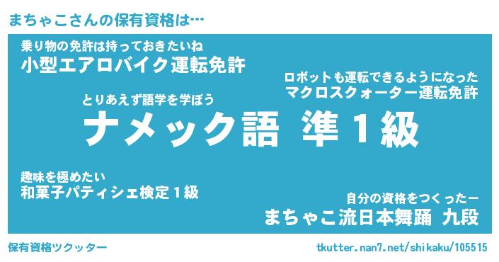 | 意味不明あだ名 | 『ペロリンまちゃこ』『永久保存まちゃこ』 |