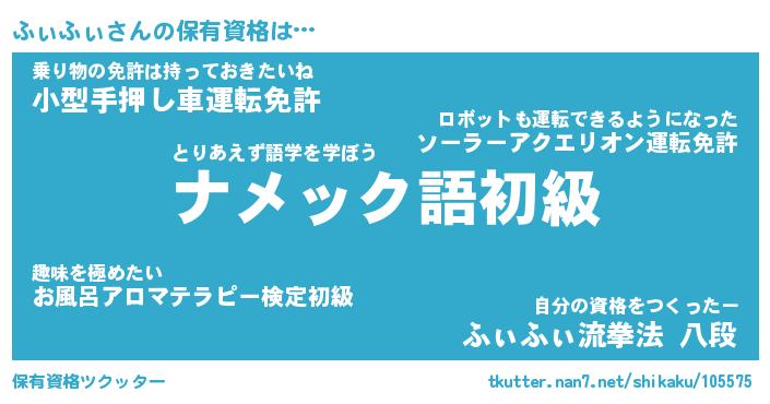 | 男性向けラノベタイトル風あだ名 | 『ふぃふぃの憂鬱』 |