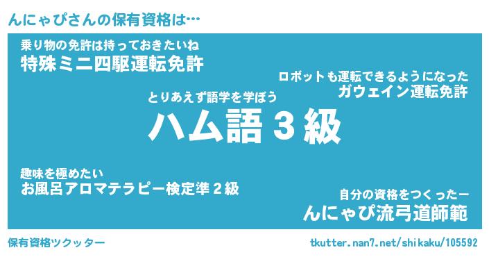 | ヒーロー風カッコイイあだ名 | 『スーパーンニャピ』『天弓騎士ンニ』 |