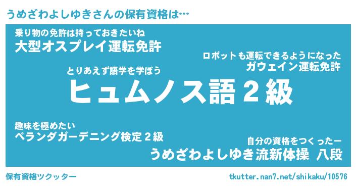 | ファンタジー風あだ名 | 『ウメフェル』『ファントムウメス』 |