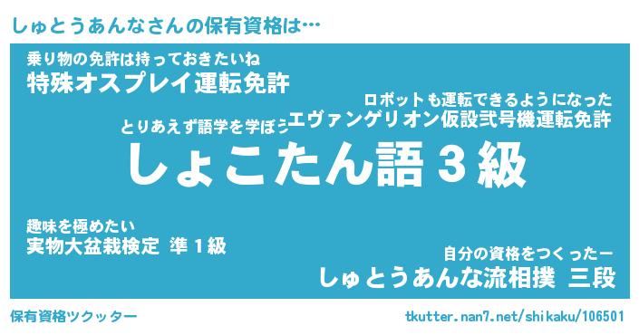 | ツイッター | しゅとうあんなさんのツイッターID『namakemono_idle』 |