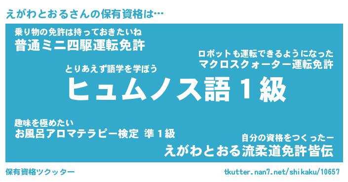 | 肩書あだ名 | 『えがわとおる社長』『えがわとおる班長』 |