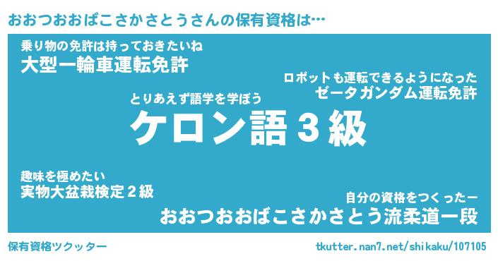 | ツイッター | おおつおおばこさかさとうさんのツイッターID『kikurage_idle』 |