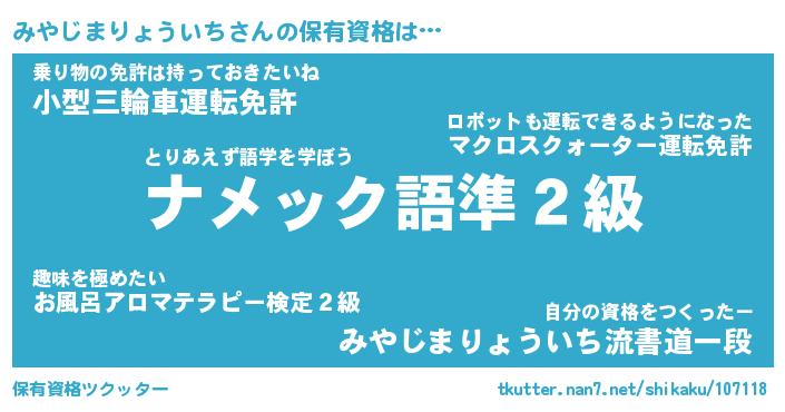 | ピコ太郎風あだ名 | 『ミコ八郎』『ピミ次郎』『ミヤ一郎』 |