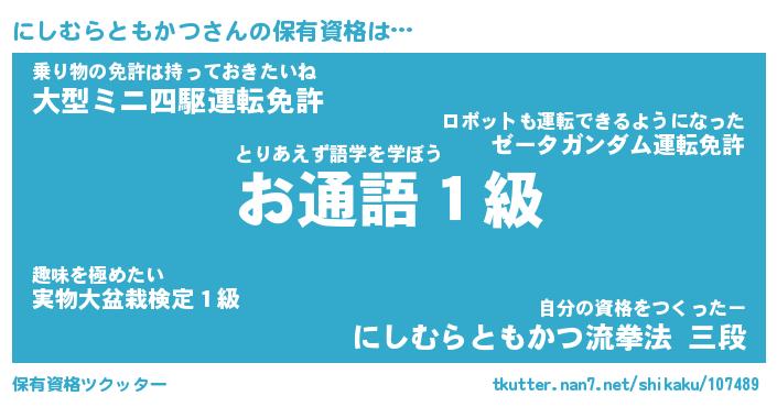 | 肩書あだ名 | 『にしむらともかつ社長』 |