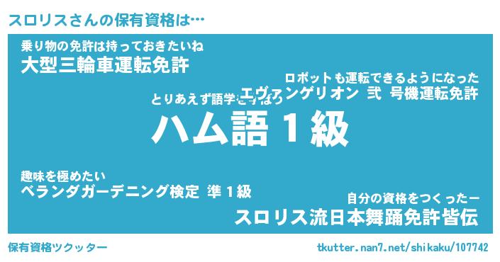 | 意味不明あだ名 | 『ペロリンスロリス』『永久保存スロリス』 |