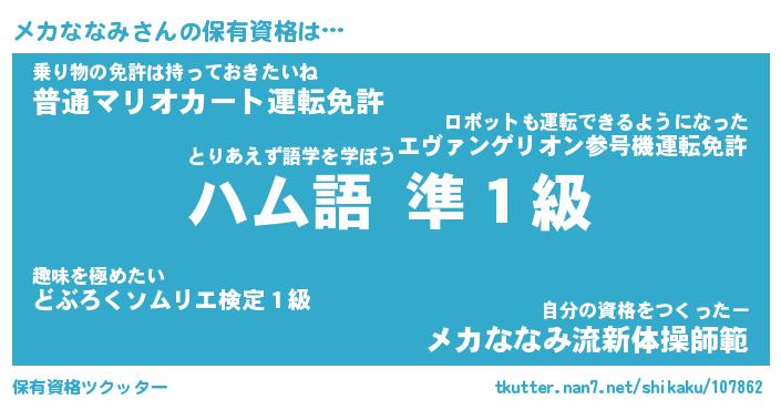 | ヒーロー風カッコイイあだ名 | 『スーパーメカナナミ』『魔戒騎士メカ』 |