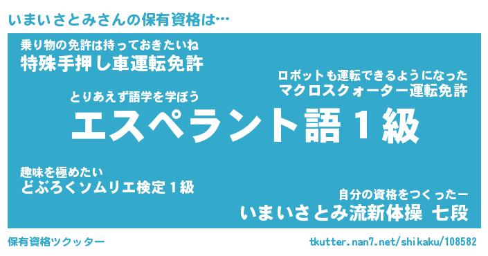 | 女子向けラノベタイトル風あだ名 | 『(仮)いまいさとみのやんごとなき事情』 |