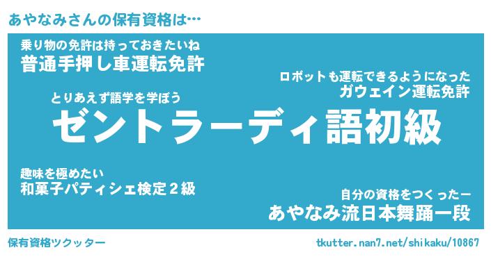 | ファンタジー風あだ名 | 『アヤフェル』『エターナルアヤナミー』 |