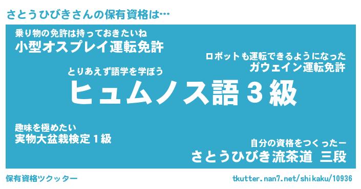 | ツイッター | さとうひびきさんのツイッターID『namakemono_star』 |