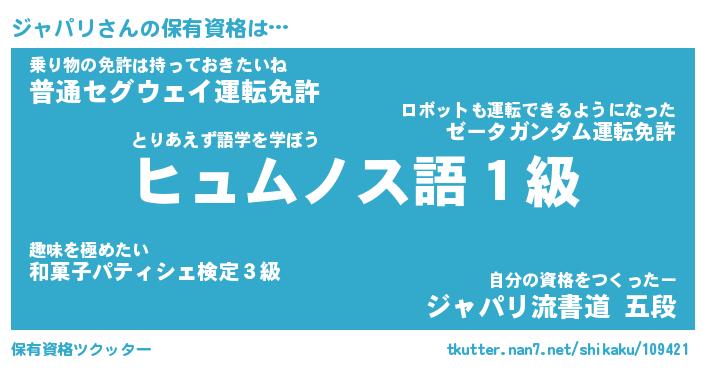 | 伝説のあだ名 | 『封印されし竜騎士ジャパリ』 |