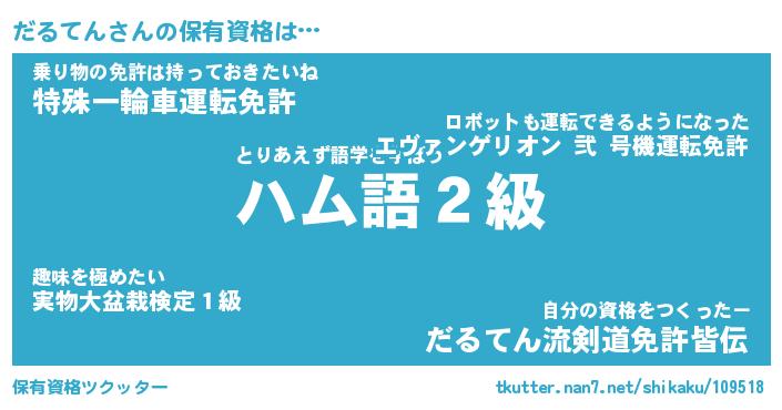 | 意味不明あだ名 | 『ペロリンだるてん』『永久保存だるてん』 |