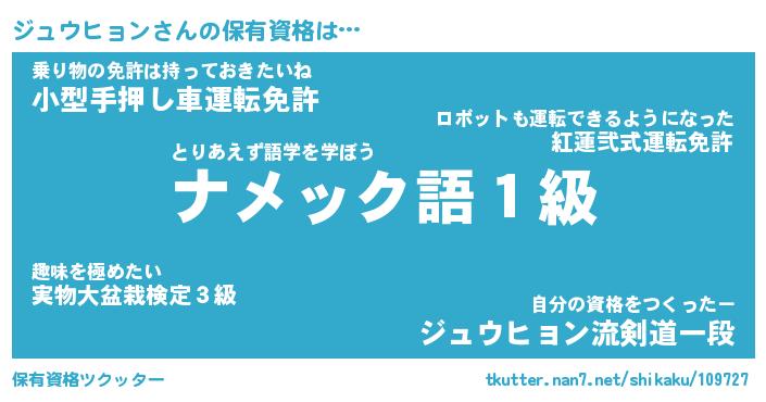 | 男性向けラノベタイトル風あだ名 | 『ジュウヒョンの憂鬱』 |