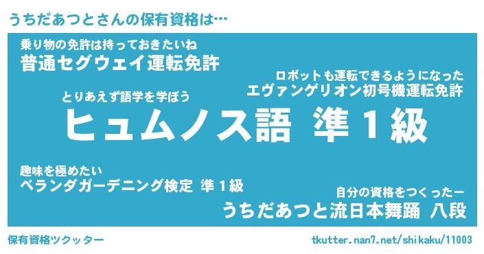 | 肩書あだ名 | 『うちだあつと店長』『うちだあつと班長』 |