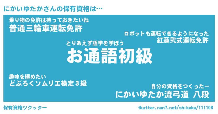 | ヒーロー風カッコイイあだ名 | 『スーパーニカイユタカ』『魔戒騎士ニカ』 |
