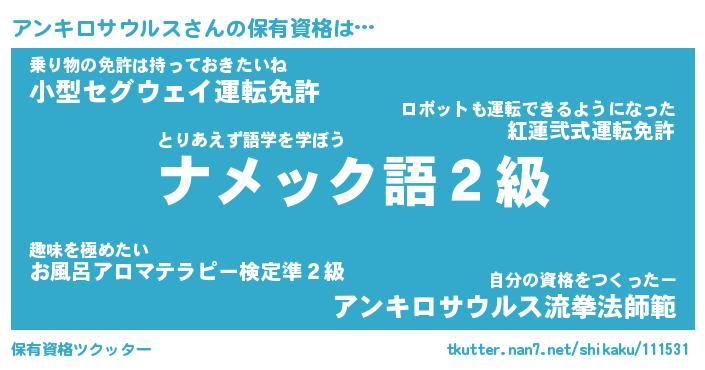 | 男性向けラノベタイトル風あだ名 | 『アンキロサウルスの憂鬱』 |