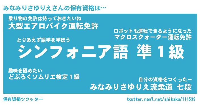 | 伝説のあだ名 | 『伝説の傭兵みなみりさゆりえ』 |