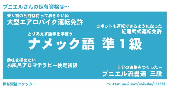 | ヘコむあだ名 | 『プニにゅー』『なまこ酢』『プニを』 |