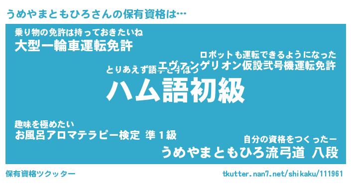 | 胡散臭い通販商品みたいなあだ名 | 『モテモテ間違いなし霊験あらたかなお札…その名も「うめやまともひろ」』 |