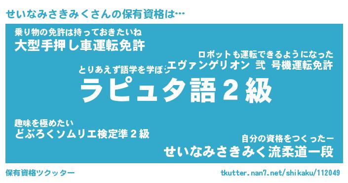 | 伝説のあだ名 | 『不死鳥の竜騎士せいなみさきみく』 |