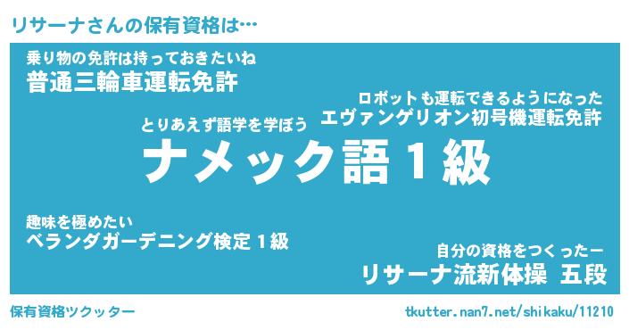 | 肩書あだ名 | 『リサーナ社長』『リサーナ総理大臣』 |
