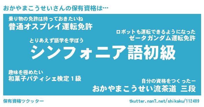 | 肩書あだ名 | 『おかやまこうせい御曹司』 |