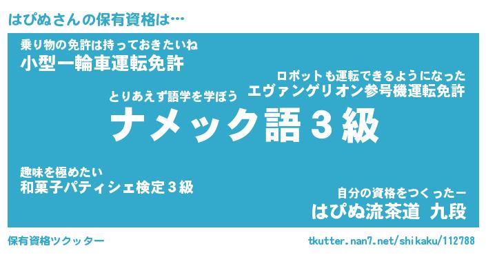 | ヘコむあだ名 | 『はぴにゅー』『酢こんぶ』『はぴを』 |