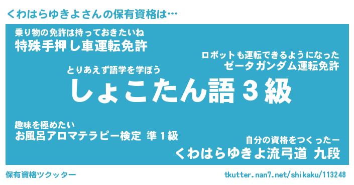 | 伝説のあだ名 | 『封印されし傭兵くわはらゆきよ』 |
