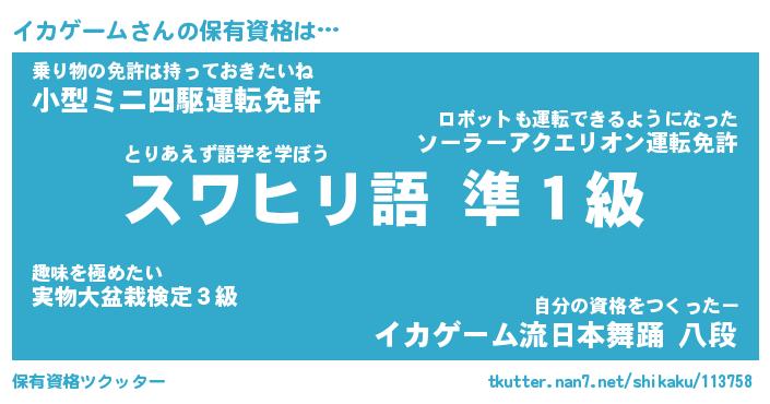 | ファンタジー風あだ名 | 『イカフェル』『エターナルイカゲームー』 |