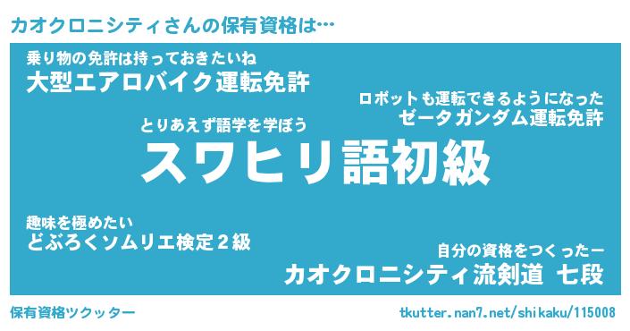 | 伝説のあだ名 | 『伝説のスナイパーカオクロニシティ』 |