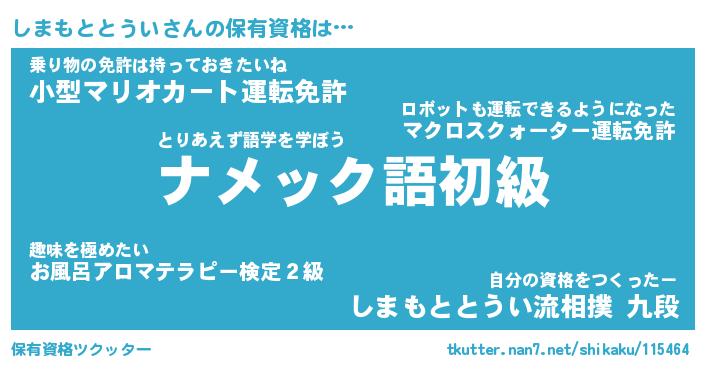 | 胡散臭い通販商品みたいなあだ名 | 『モテモテ間違いなし霊験あらたかなお札…その名も「しまもととうい」』 |