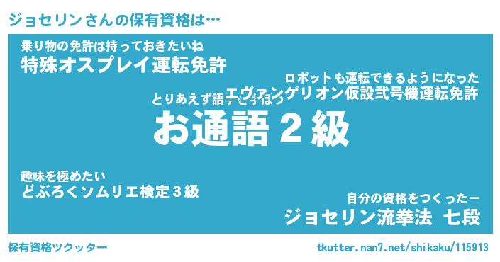 | ファンタジー風あだ名 | 『ジョフェル』『エターナルジョセリンー』 |