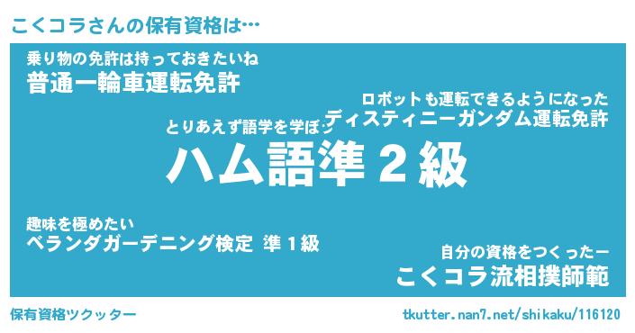 | ファンタジー風あだ名 | 『コクフェル』『エターナルコクコラー』 |