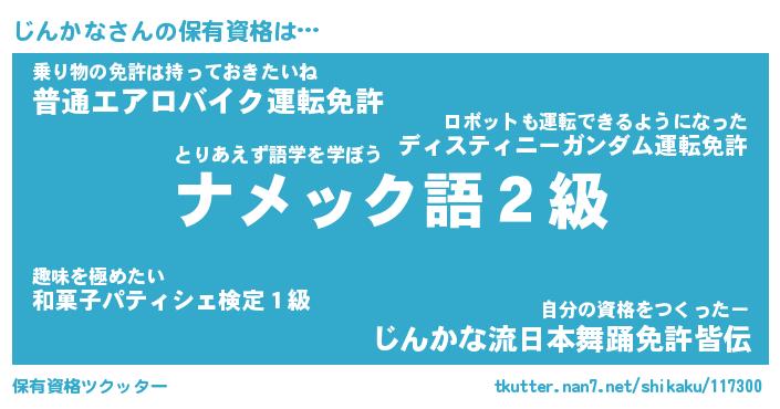 | 意味不明あだ名 | 『ペロリンじんかな』『永久保存じんかな』 |