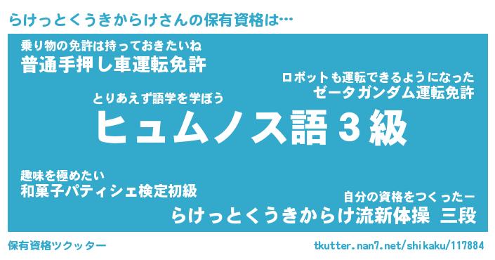 | ツイッター | らけっとくうきからけさんのツイッターID『namakemono_idle』 |