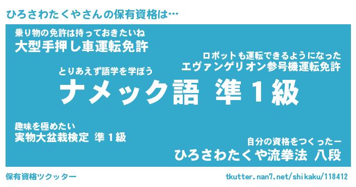 | 伝説のあだ名 | 『不死鳥の傭兵ひろさわたくや』 |