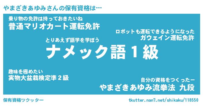 | 恥ずかしいあだ名 | 『プリティーやまざきあゆみ』『やまちん』 |