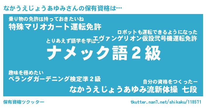 | 肩書あだ名 | 『なかうえじょうあゆみCEO』 |
