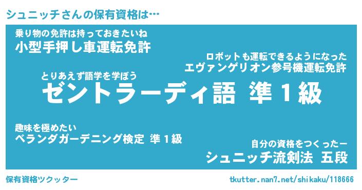 | ヒーロー風カッコイイあだ名 | 『スーパーシュニッチ』『天弓騎士シュ』 |