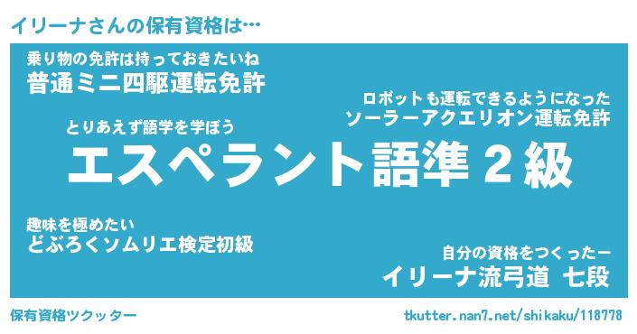 | ファンタジー風あだ名 | 『イリフェル』『エターナルイリーナー』 |