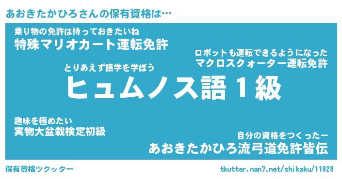 | ツイッター | あおきたかひろさんのツイッターID『namakemono_man』 |