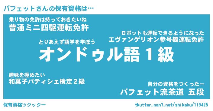 | ヒーロー風カッコイイあだ名 | 『スーパーバフェット』『天弓騎士バフ』 |