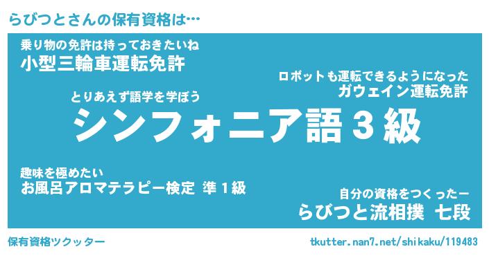 | 肩書あだ名 | 『らびつと店長』『らびつと総理大臣』 |