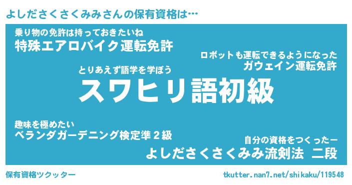 | ツイッター | よしださくさくみみさんのツイッターID『konnyaku_nyan』 |