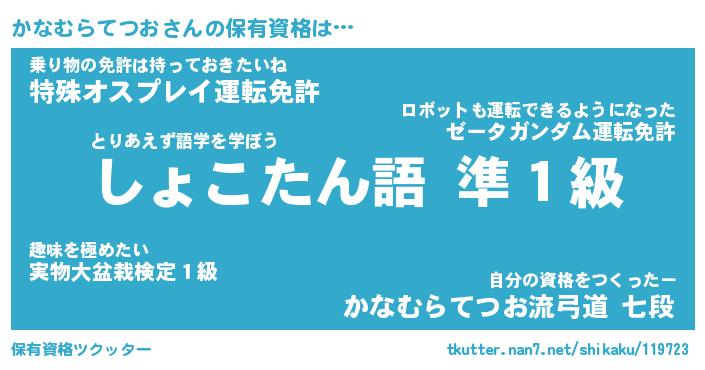 | 伝説のあだ名 | 『封印されし傭兵かなむらてつお』 |