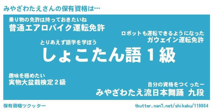 | 肩書あだ名 | 『みやざわたえ社長』『みやざわたえ団長』 |