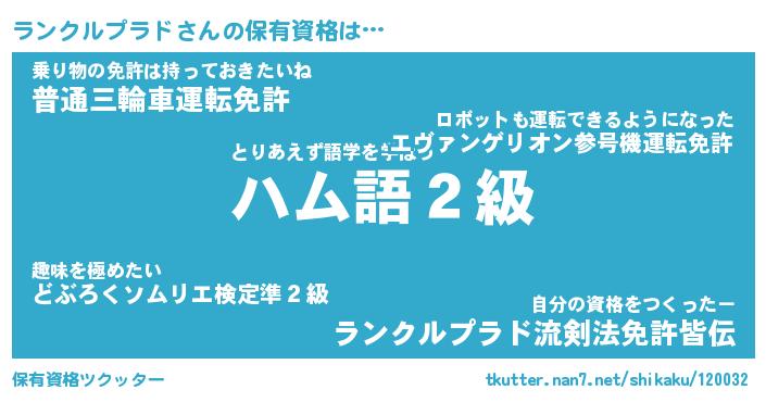 | 男性向けラノベタイトル風あだ名 | 『ランクルプラドアートオンライン』 |