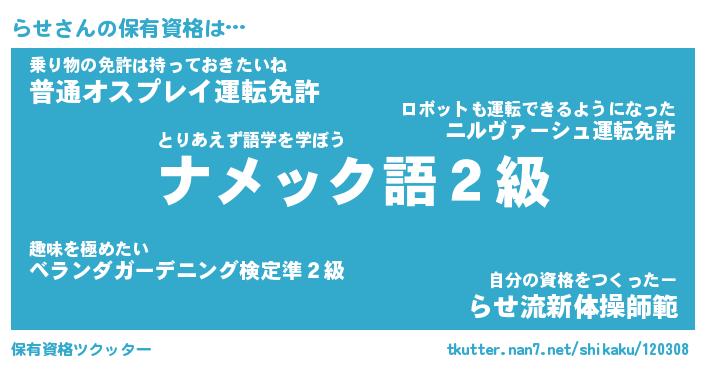 | ヘコむあだ名 | 『らせふぇ~』『つくし』 |